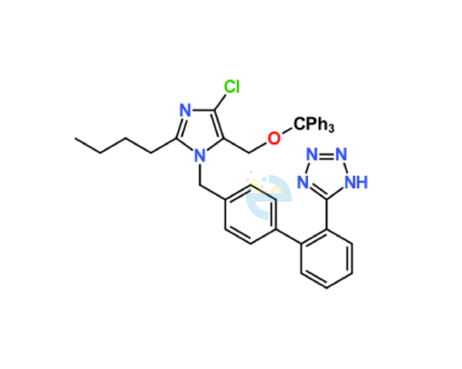 5-[4′-[[2-butyl-4-chloro5-[[(triphenylmethyl]oxy]methyl]-1H-imidazol-1yl]methyl]biphenyl-2-yl]-1H-tetrazole 5-[4′-[[2-Butyl-4-chloro-5-[(triphenyl methoxy)methyl]-1H-imidazol-1-yl]methyl] [1,1′-biphenyl]-2-yl]-2H-tetrazole |